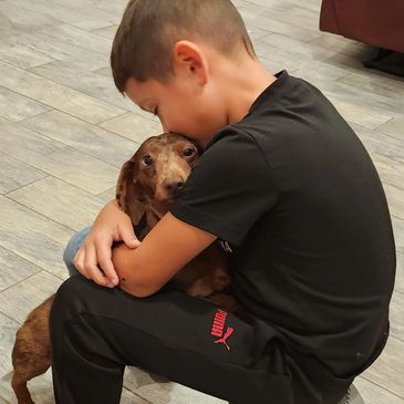 Our breeding program is designed to produce dachshunds that are healthy, happy, and well-adjusted. We carefully select our breeding pairs based on a variety of factors, including health, and conformation. Our pups are raised in a loving and nurturing environment, and we take great care to ensure that they receive the best possible care and socialization. Also, our pups are raised alongside our children and inside our home.